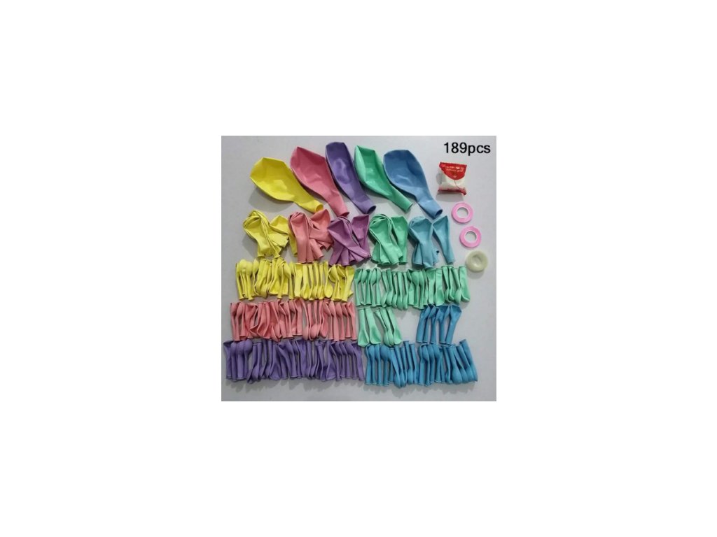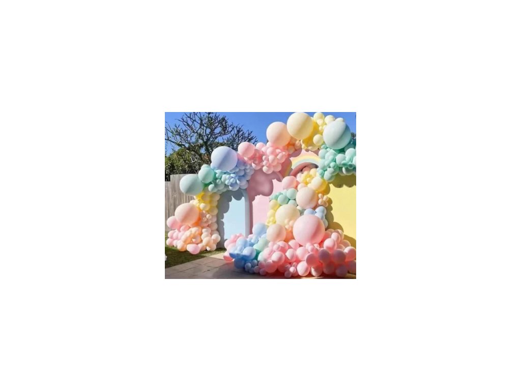 Barevná balonová girlanda v pastelových barvách, obsahující různé velikosti balonů pro dosažení dokonalého efektu.