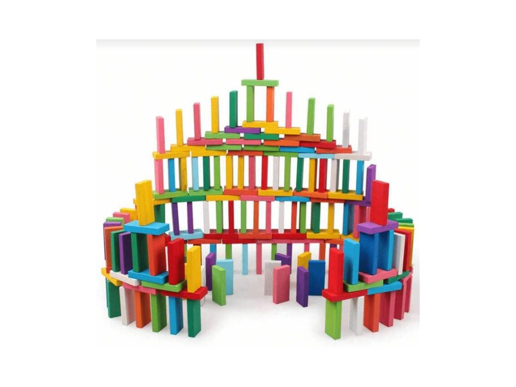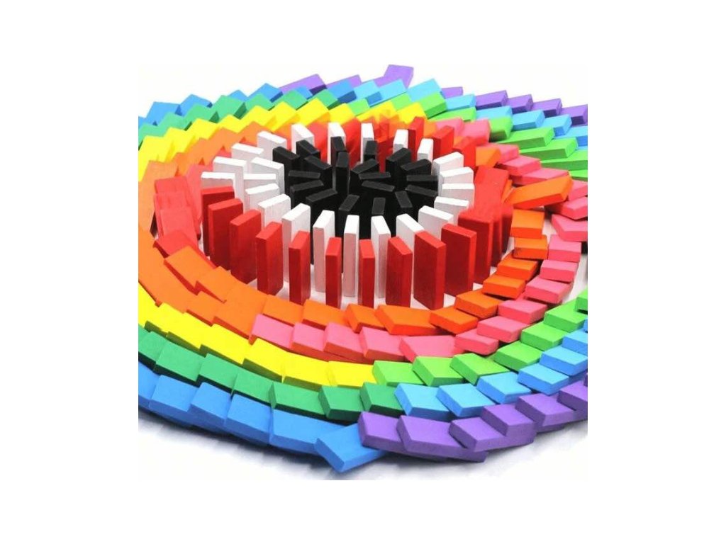 Tento set obsahuje 120 barevných dřevěných dílků domina, ideálních pro kreativní hru a rozvoj dovedností.