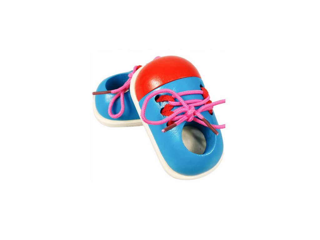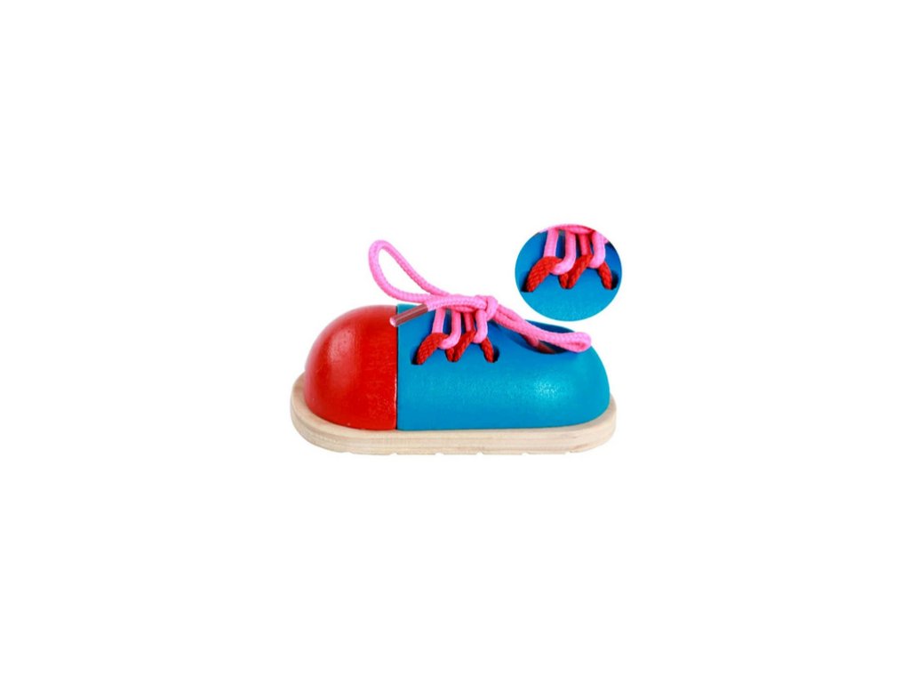 1ks Dřevěná kreativní dětská šněrovací cvičná bota.