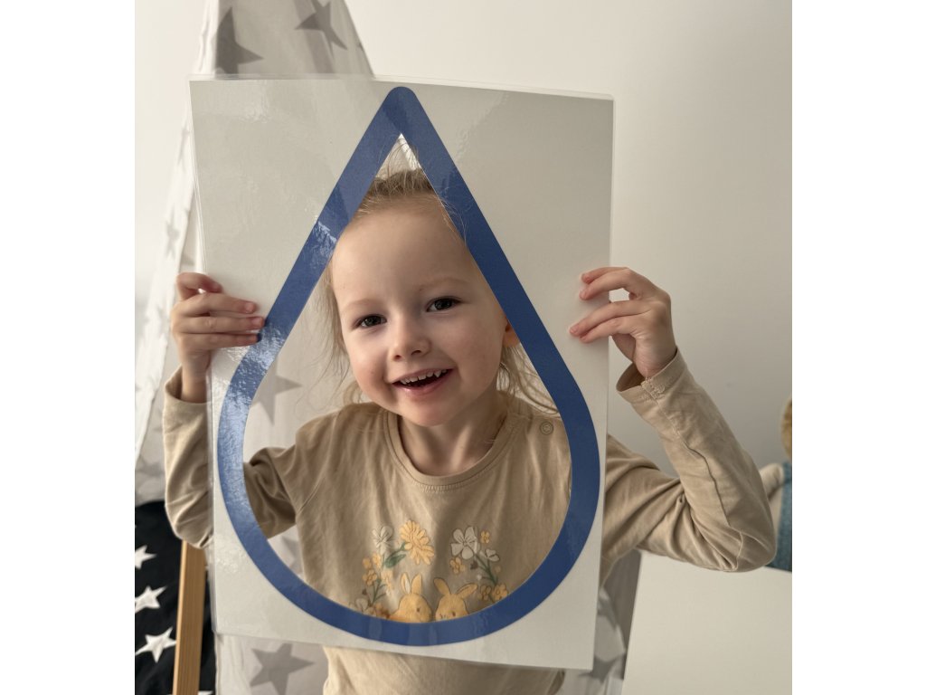 - 1 fotorámeček Kapka ve velikosti A3, který Vám poslouží pro veselou aktivitu, při které můžete vyfotit Vaše děti s rámem Kapka.