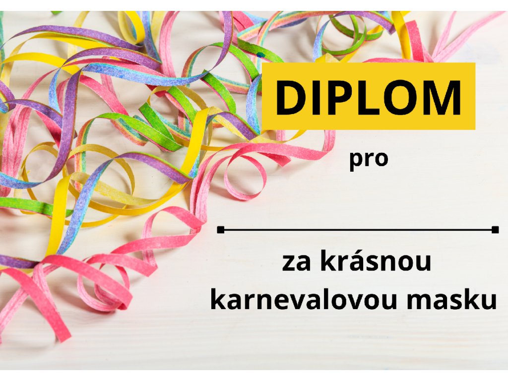 Diplom za krásnou karnevalovou masku – vzor konfety.
