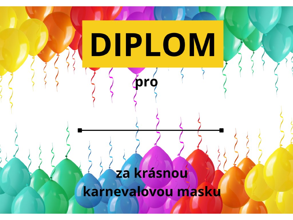 Diplom za krásnou karnevalovou masku - vzor balony velké.
