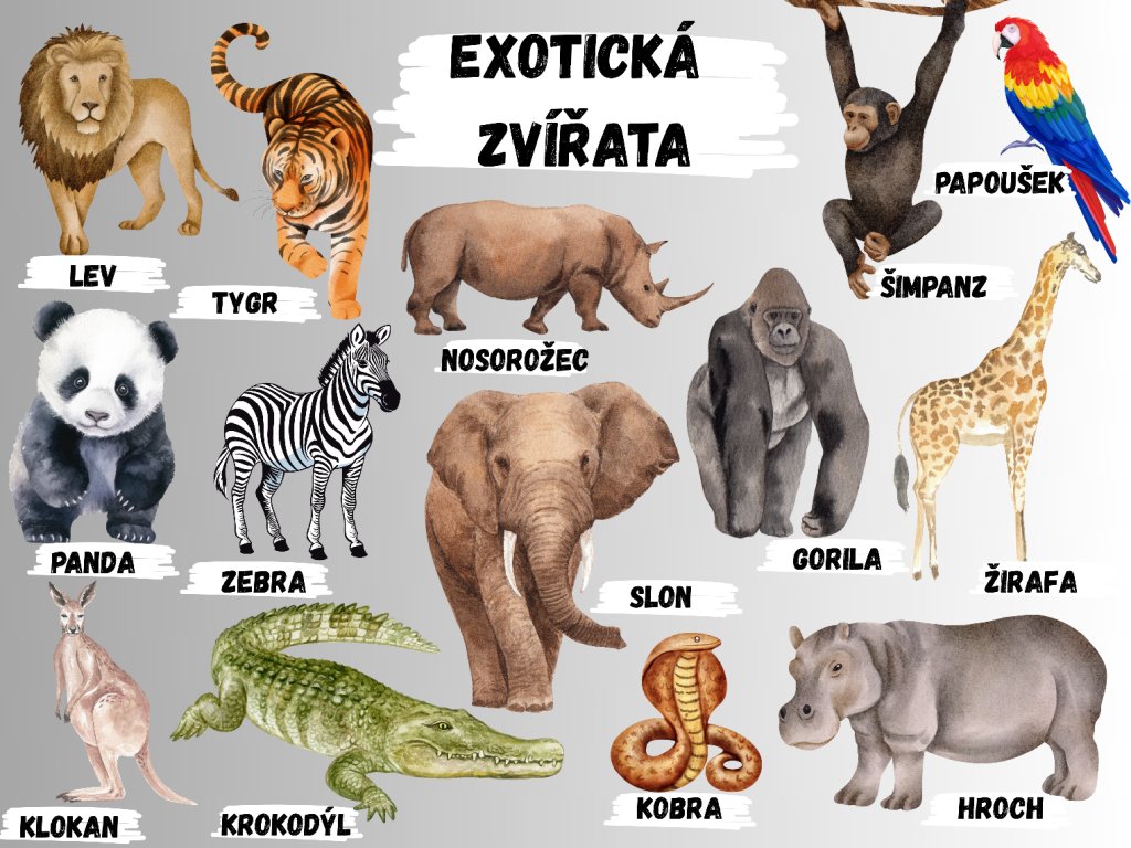 Edukační tabule - Exotická zvířata