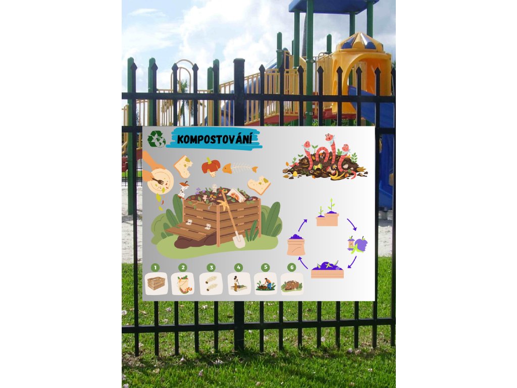 Montáž: Tabule má na každém kraji otvor, vhodný k přišroubování tabule nebo jejímu přivázání o plot.