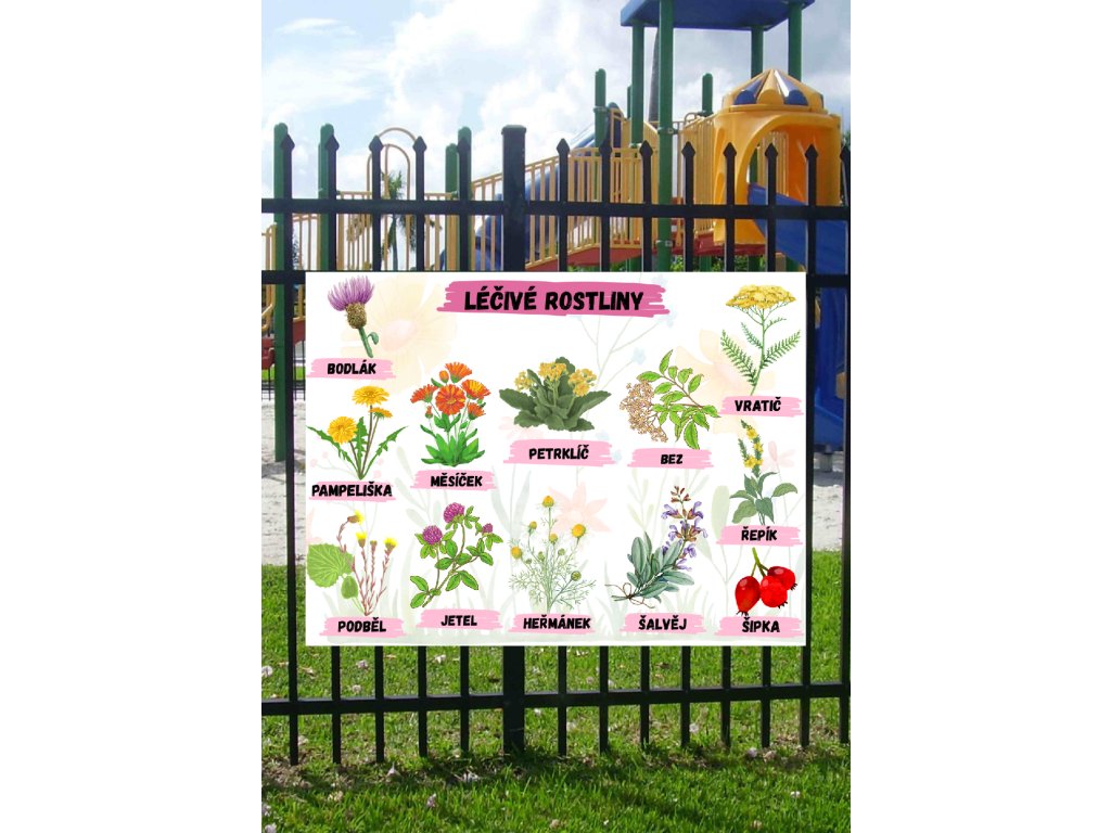 Montáž: Tabule má na každém kraji otvor, vhodný k přišroubování tabule nebo jejímu přivázání o plot.