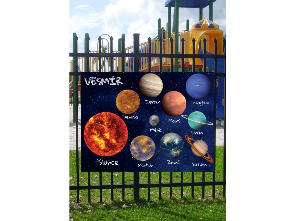 aby se hodila k jakémukoli exteriérovému prostředí. Montáž: Tabule má na každém kraji otvor, vhodný k přišroubování tabule nebo jejímu přivázání o plot.