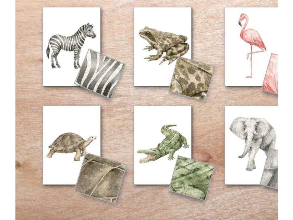 Sada identifikačných kariet s maketami zhodných vzorov - tematika EXOTICKÉ ZVIERATÁ.
