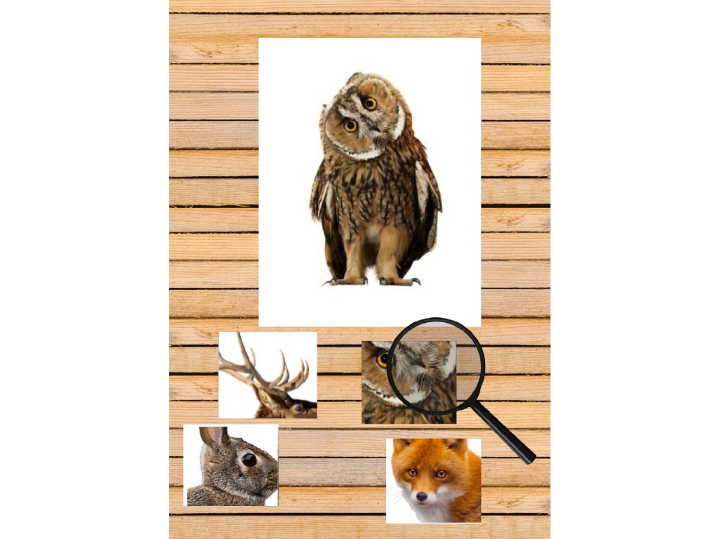Sada identifikačných kariet s maketami zhodných vzorov - tematika LESNÉ ZVIERATÁ.Celá sada obsahuje 10 kartičiek formátu A5, ktoré sú potiahnuté transparentnou fóliou, umožňujúcou ich opakované použitie, 10 makiet vzorov a lupu.Kartičky podporujú rozvoj vizuálneho vnímania detí, ich tvorivosť a kreativitu.