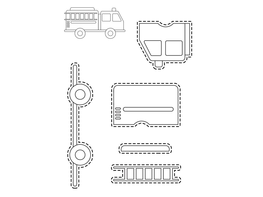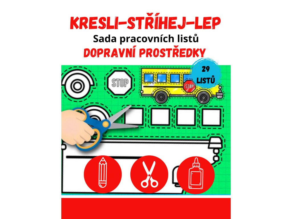 Sada obsahuje 29 pracovních listů, zaměřených na rozvoj grafomotoriky a vizuomotoriky. Cvičení v pracovních listech jsou zaměřena na kreslení, lepení a stříhání. Tematikou pracovních listů jsou dopravní prostředky. Formát: A4