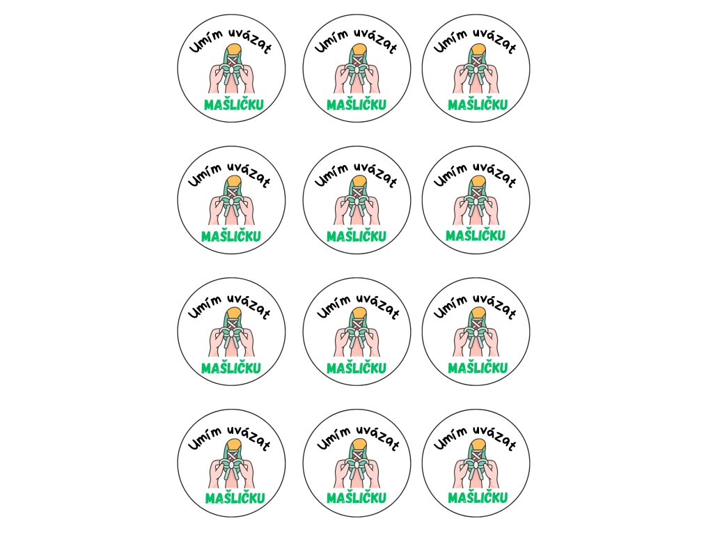 Motivační samolepky ,,Umím vázat mašličku" Formát: A4 - obsahuje 12 kusů předřezaných samolepek o průměru 6 cm. Praktické využití: - pro děti do MŠ ale i na doma - vhodné jako hodnocení nebo odměna