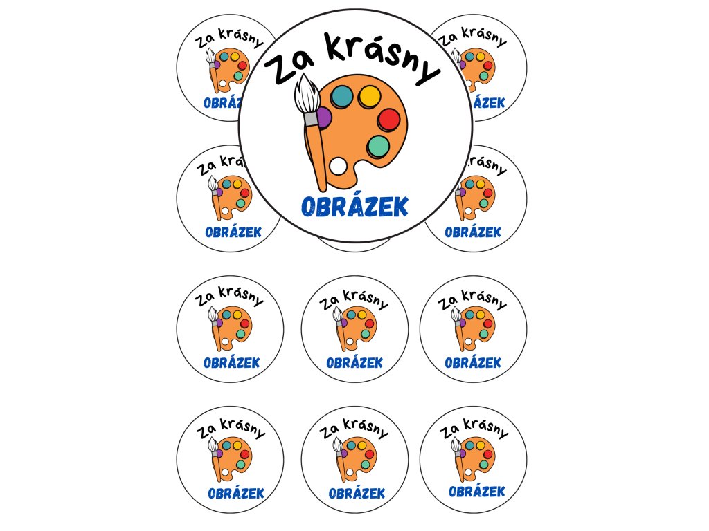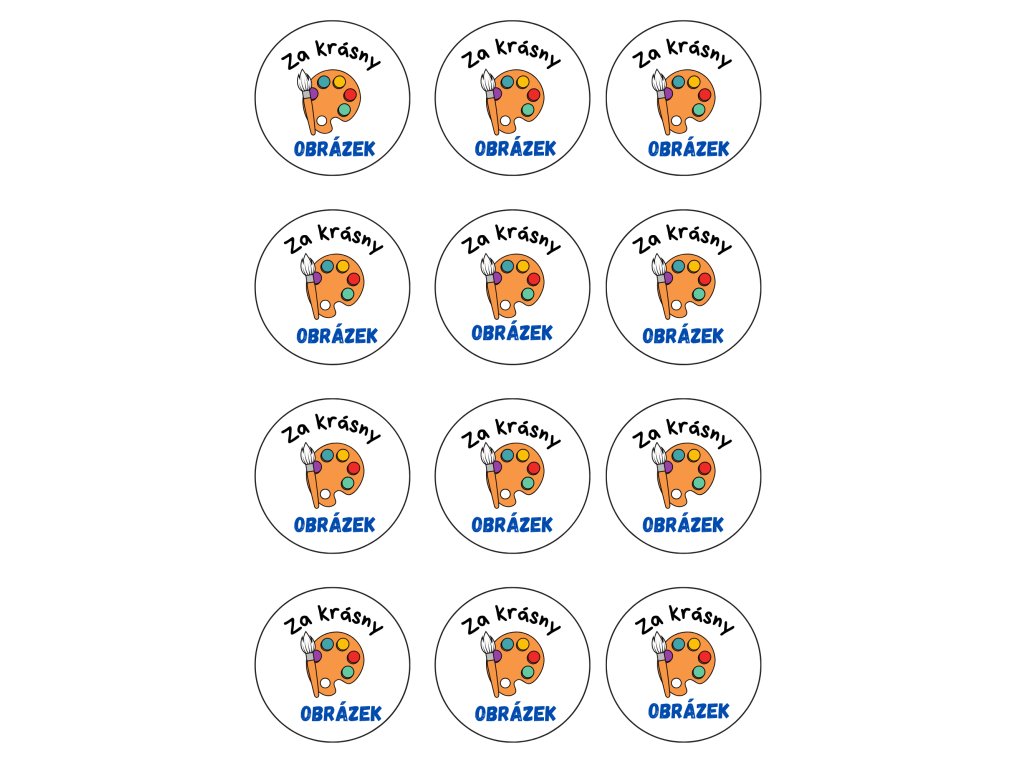 Motivační samolepky ,,Za krásný obrázek" Formát: A4 - obsahuje 12 kusů předřezaných samolepek o průměru 6 cm. Praktické využití: - pro děti do MŠ ale i na doma - vhodné jako hodnocení nebo odměna