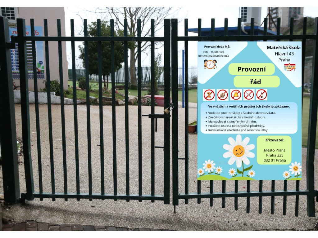 Montáž: Tabulka má na každém kraji otvor, vhodný k přišroubování tabule nebo jejímu přivázání o plot.