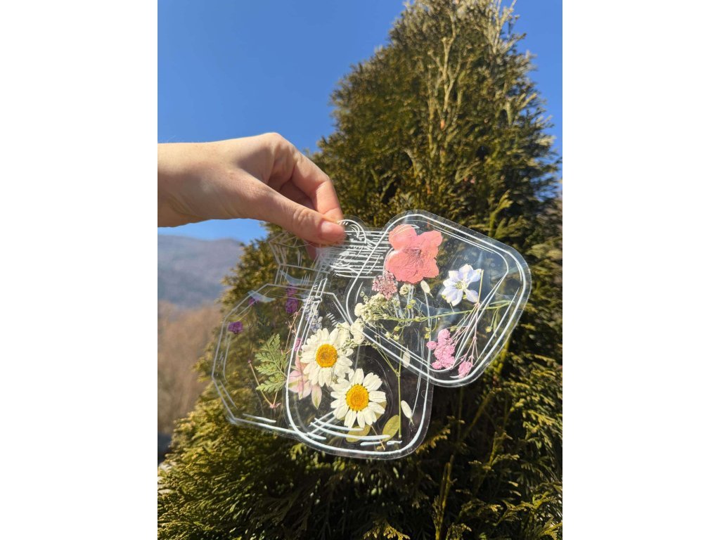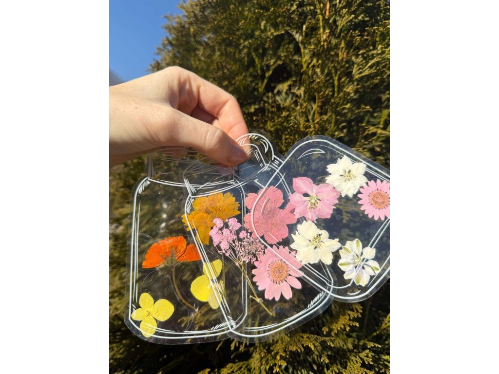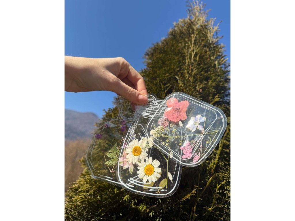Každý obal lze rozlepit, dovnitř se může vložit sušený květ, obrázek, nálepka. Po vložení obrázku nebo sušeného květu obě strany transparentní fólie jednoduše opět spojíte.