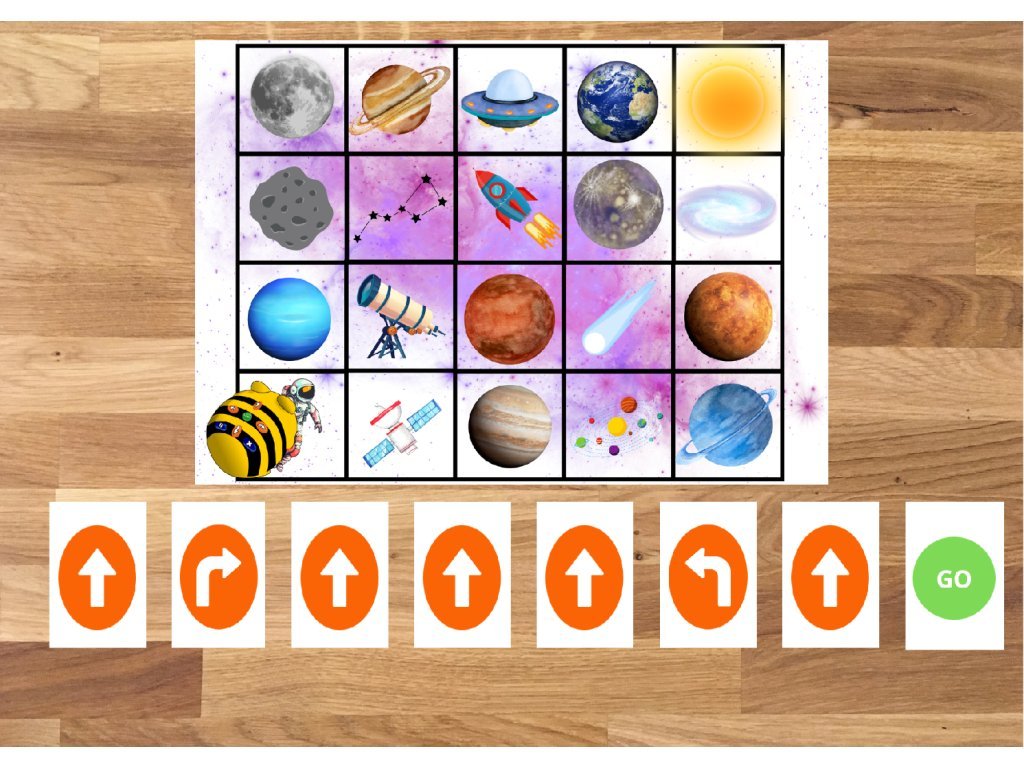 Sada sekvenčních karet ve formátu A5, laminátovaná s dlouhou životností. Ideální pomocné karty při plánování a nahrávání programu na Bee Bot včelku.