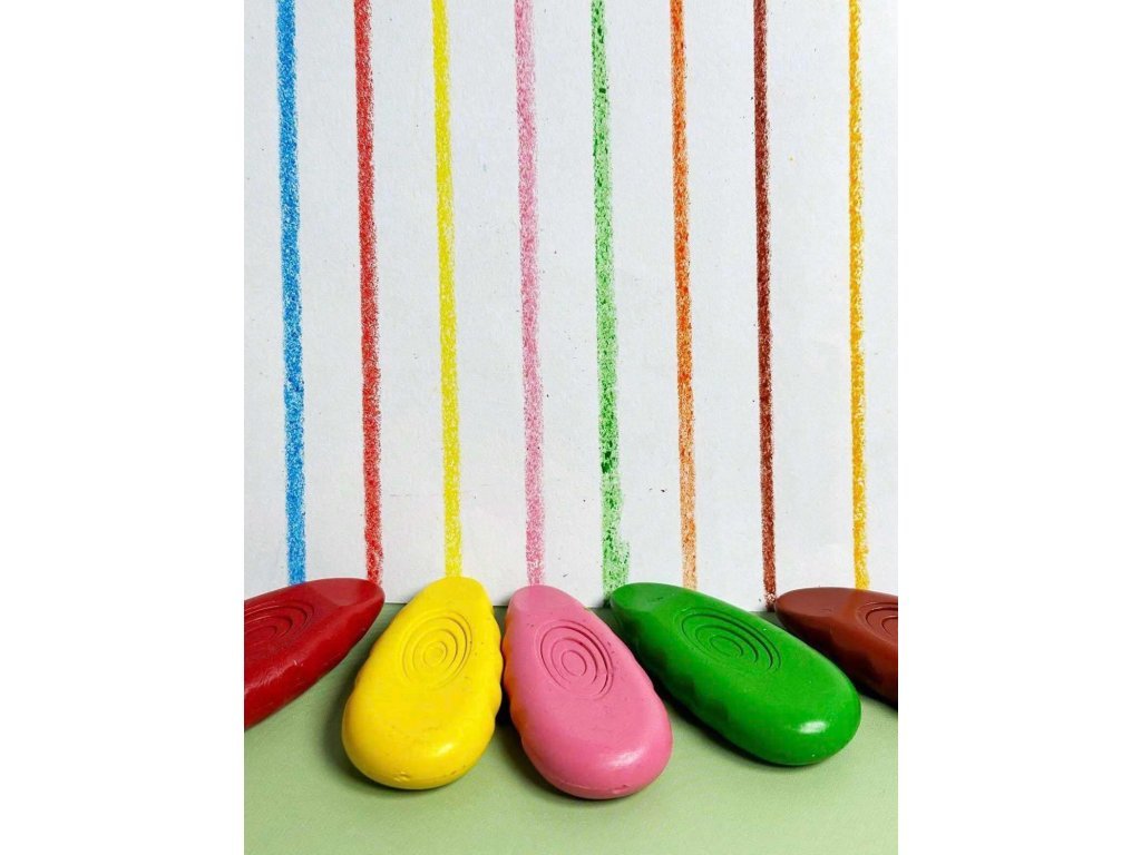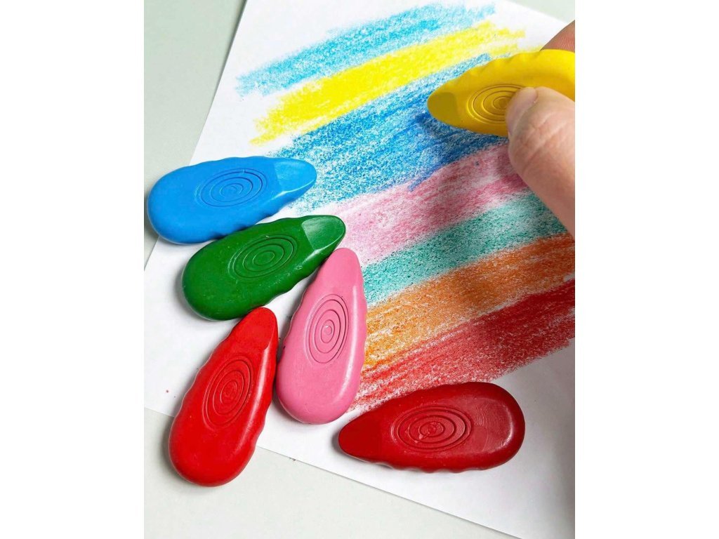 Tyto voskovky pro nejmenší nemají klasický úzký tvar. Široké voskovky se malým dětem lépe drží, díky čemuž se jejich ruka při kreslení tak rychle neunaví.