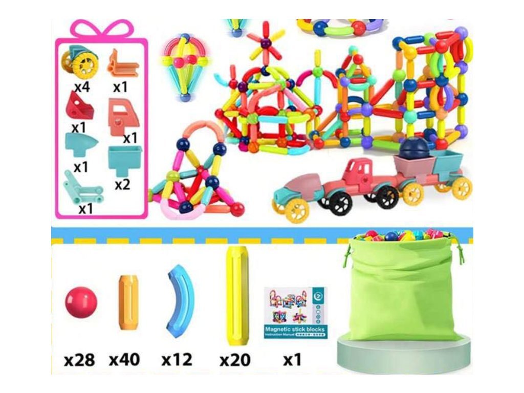 Tyto díly se snadno spojují pomocí zabudovaných magnetů, což umožňuje dětem snadno vytvářet různé struktury a objekty.