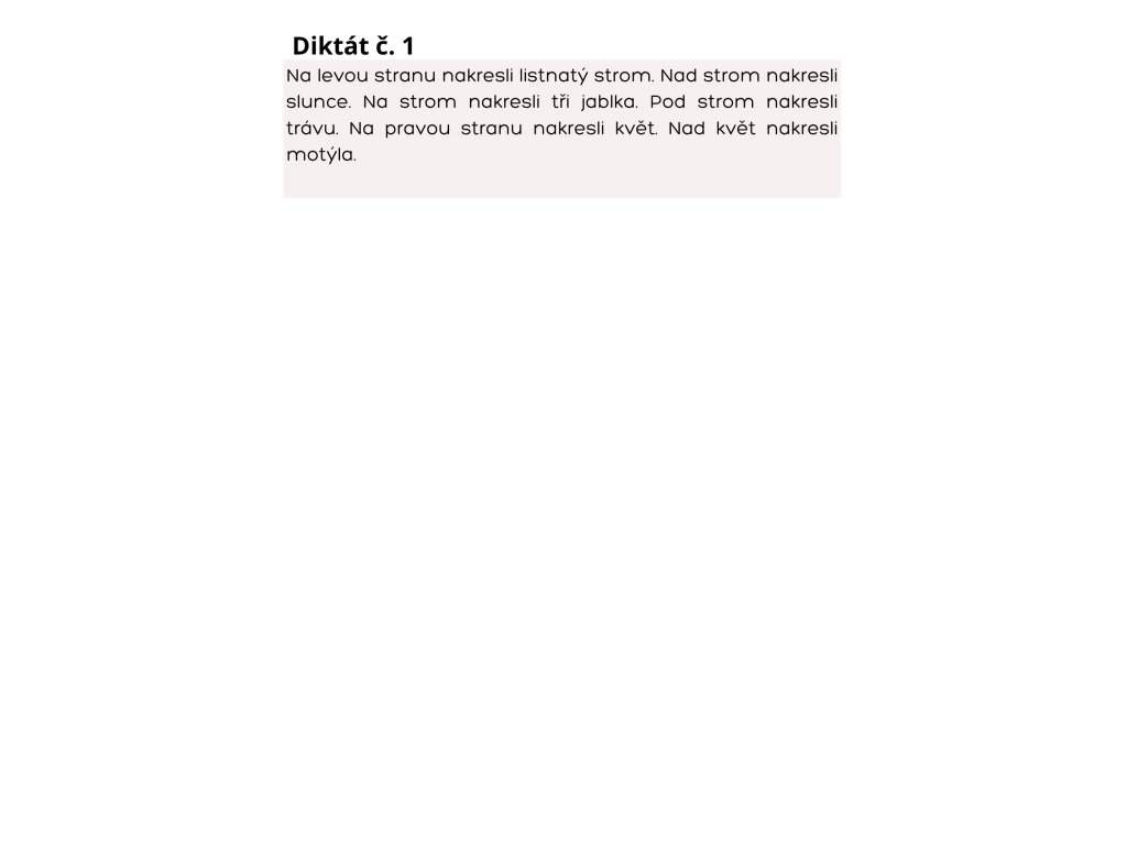 Pracovní sešit určený pro předškoláky, zaměřené na slovní diktáty. Pracovní sešit obsahuje 24 stran, zaměřených na rozvoj myšlení a porozumění.