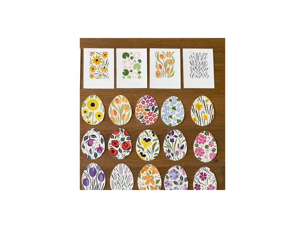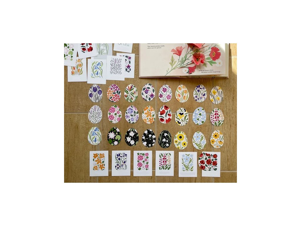 Úkolem dětí je spojit kartičku s květinovým vzorem a vajíčko ve stejném designu. V sadě se nachází 20 různých květinových vzorů a 20 vajíček.