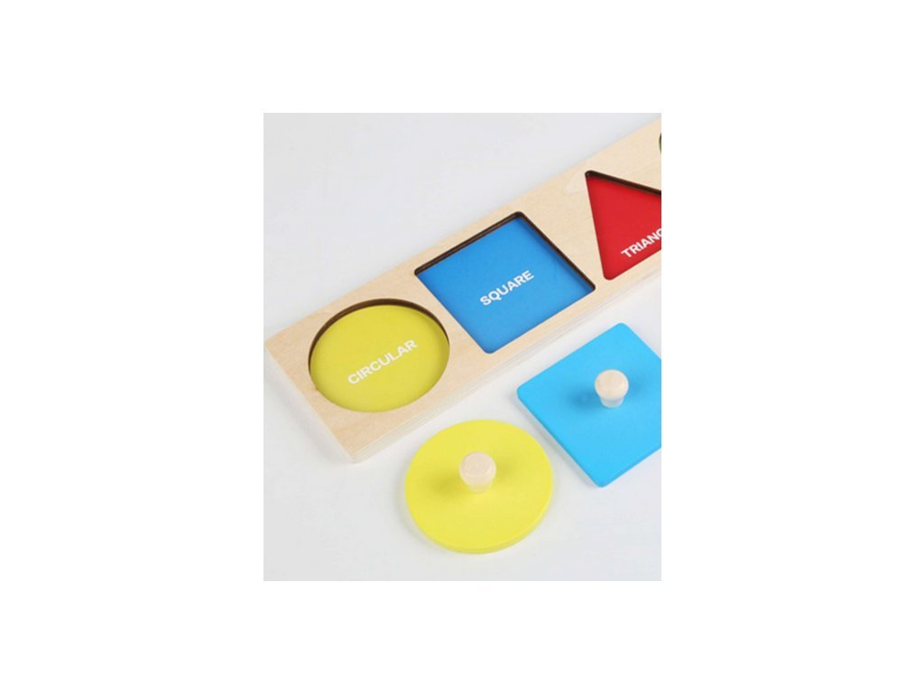 Děvčátka a chlapci si mohou vkládat tyto základní geometrické tvary do správných výřezů v podložce. Formou hry si tak děti mohou posílit matematickou představivost.