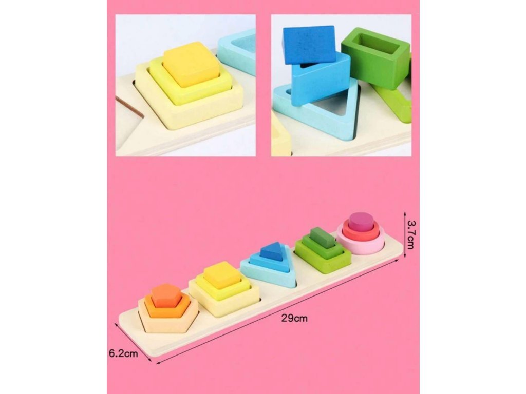 Nechte se unést barevným světem barev a tvarů, které vám nabízí tato pomůcka. Nádherné barevné dřevěné vkládací puzzle jsou skvělou pomůckou pro rozvoj jemné motoriky vašich ratolestí.